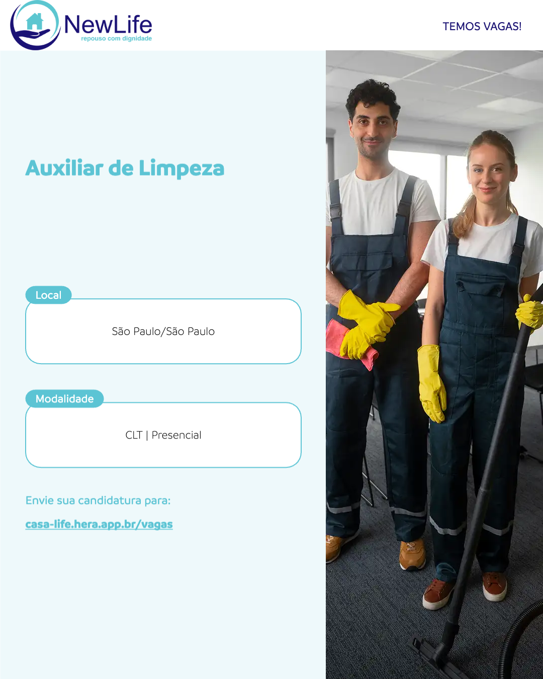 Trabalha na área de limpeza, higienização, organização, manutenção de cômodos e pertences dos idosos, além de áreas comuns, limpeza terminal